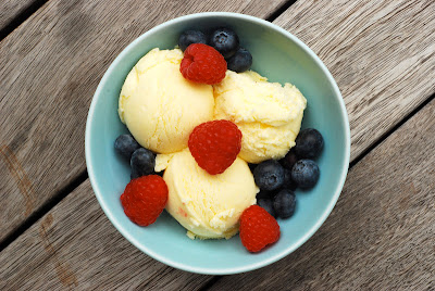 Serve immediately if you like "soft serve" or put in containers in the freezer for 30-45 minutes for a little firmer texture. If it gets too firm for you just let it sit out for a few minutes and it will come back around, although it shouldn't ever get too hard.